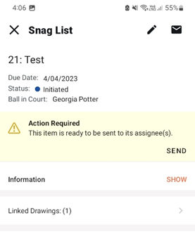 - You can do this by tapping into each item, reviewing the information entered and adding details where necessary and then tapping Send in the Action Required bar