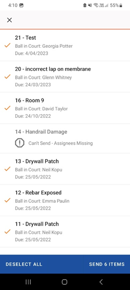 - If you are confident that you have already entered enough information select the items you want to issue and tap Send Items in the bottom right corner of the page