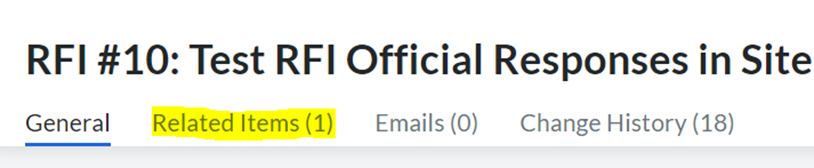In the completed correspondence item, the linked RFI will look like this in the Links section underneath the General Information.